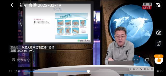 为了坚决打赢疫情防控阻击战,有效指导青年志愿者科学有序的参与疫情防控工作,3月19日,传媒技术学院举办“不负韶华,战疫有我”疫情防控志愿者专题讲座。团省委特邀山东大学齐鲁医院感染科副主任王刚于钉钉线上讲授疫情防控青年志愿者自护知识与应急处置方法,传媒技术学院社联秘书处全体成员带领全体疫情防控青年志愿者组织观看了此次专题讲座。