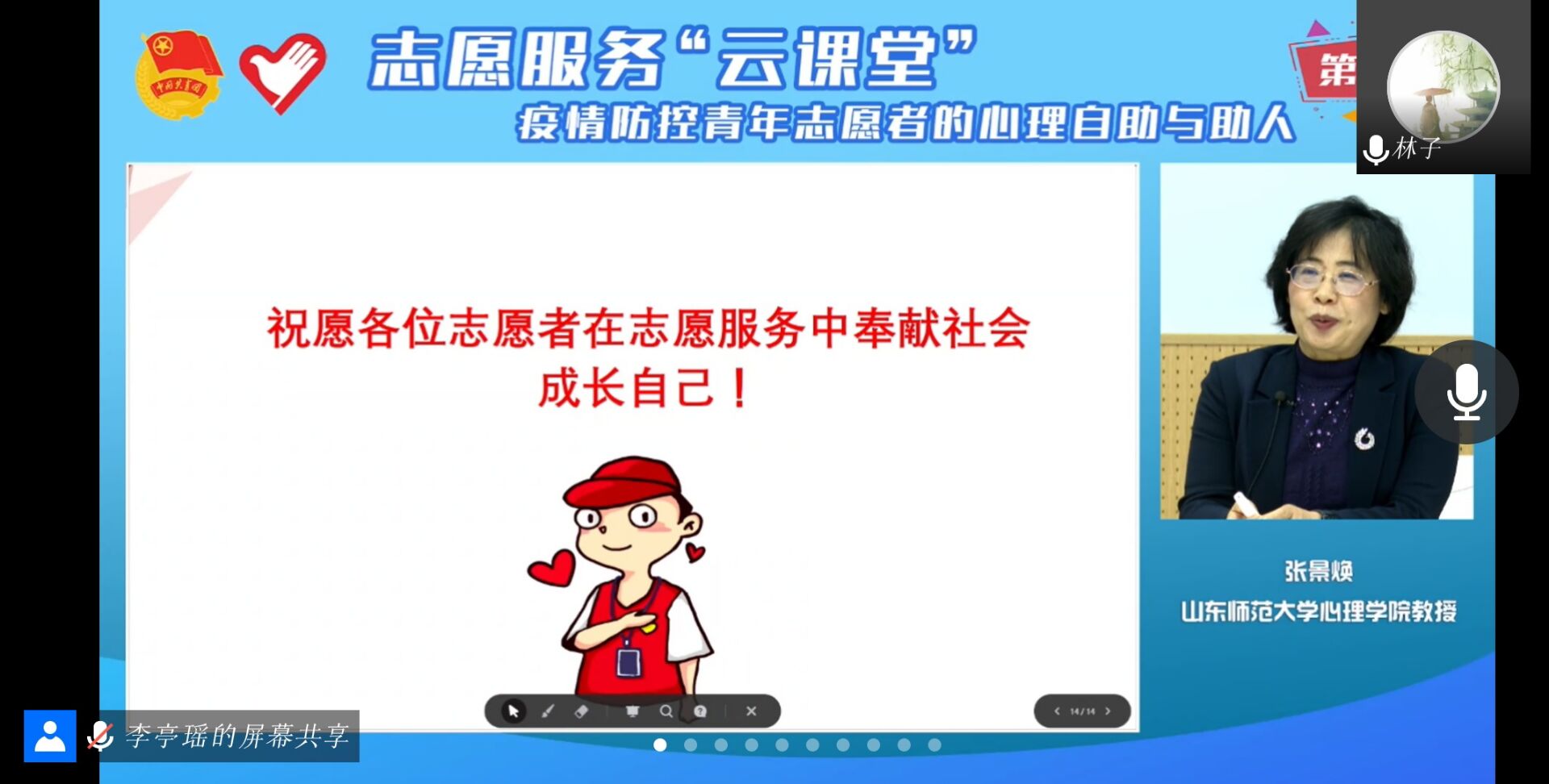 为进一步增强志愿者心理自助与助人能力,不断提升志愿服务水平,指导青年志愿者科学有序参与疫情防控工作,推进青年志愿服务组织体系建设,建立更加规范专业的疫情防控志愿服务队伍,3月29日,化学化工学院组织全体学生观看《疫情防控青年志愿者的心理自助与助人》专题讲座,本次讲座特别邀请山东师范大学心理学院张景焕教授作为宣讲嘉宾。