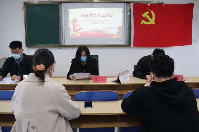3月31日下午,历史文化与旅游学院本科生党支部于6#A302教室成功召开了预备党员转正大会。大会审议并表决通过了李爽等6名同学按期转正事宜。出席本次大会的有本科生党支部书记薛天同志、辛超同志、巨国运同志以及本科生党支部全体党员同志。会议由薛天同志主持召开。