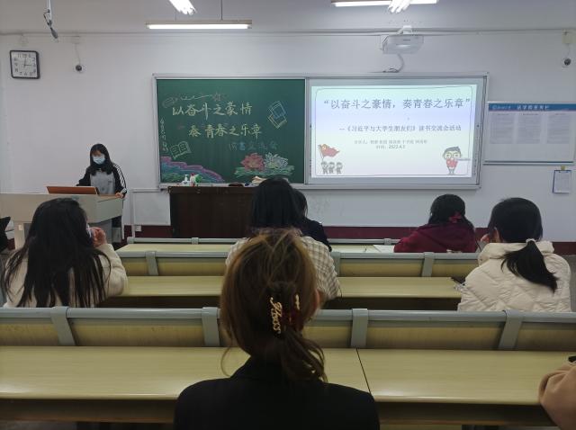 此次活动以介绍读物、分享交流、观看视频的形式展开,引导在场学生从不同年代青年与时代共奋进的真实经历中收获感悟、汲取力量。活动过程中,2021级学生姚春燕向在场学生介绍到,《习近平与大学生朋友们》一书以“当事人讲当年事”的形式,全面讲述习近平总书记在不同时期与青年学生交流、交心、交友的故事,真实记录习近平总书记对青年学生始终如一的关注、关心与关爱。在分享交流环节,2021级学生林雨彤结合学习和生活实际情况,从“志存高远”“脚踏实地”“行循自然”等角度出发,分别就学习感悟和收获启发进行交流分享,表示作为青年学子,应学习习近平总书记矢志不渝的初心坚守、永不懈怠的使命担当和求真务实的优良作风。观看视频后,在场学生积极交流心得体会,提出要始终牢记习近平总书记对青年学生的谆谆教诲,坚定持之以恒做好知识储备、孜孜不倦获取实践真知的信心与决心。