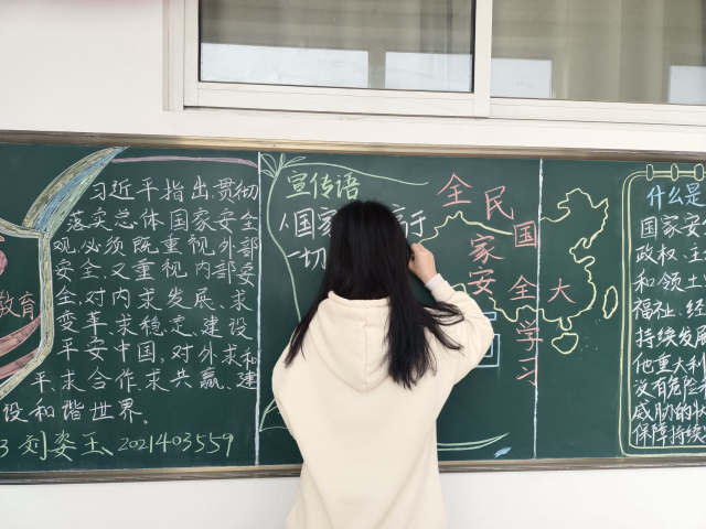 为了加强新时代大学生总体国家安全观教育,树立同学们正确的国家安全观和价值观,4月6日,马克思主义学院于东校区6#五楼C区举办此次国家安全主题板书设计活动。马瑞松担任主持人。