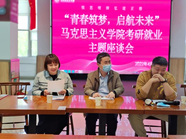为了促进师生交流,了解毕业生考研上岸的感受以及学习、生活现状,4月6日,马克思主义学院于东校区翰苑餐厅二楼召开“青春筑梦,启航未来”考研就业主题座谈会,马克思主义学院党委副书记 、副院长范华亮,辅导员李政一、朱晓涵以及部分学生代表参加。