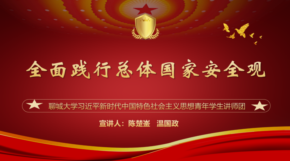 为迎接第七个全民国家安全教育日的到来,增强学生国家安全意识,4月3日,马克思主义学院于线上举行“全面践行总体国家安全观”宣讲会,马克思主义学院学生、聊城大学习近平新时代中国特色社会主义思想青年学生讲师团成员陈楚崟、温国政担任主讲人。讲师团团长李宣志和马院全体学生在线参加会议。