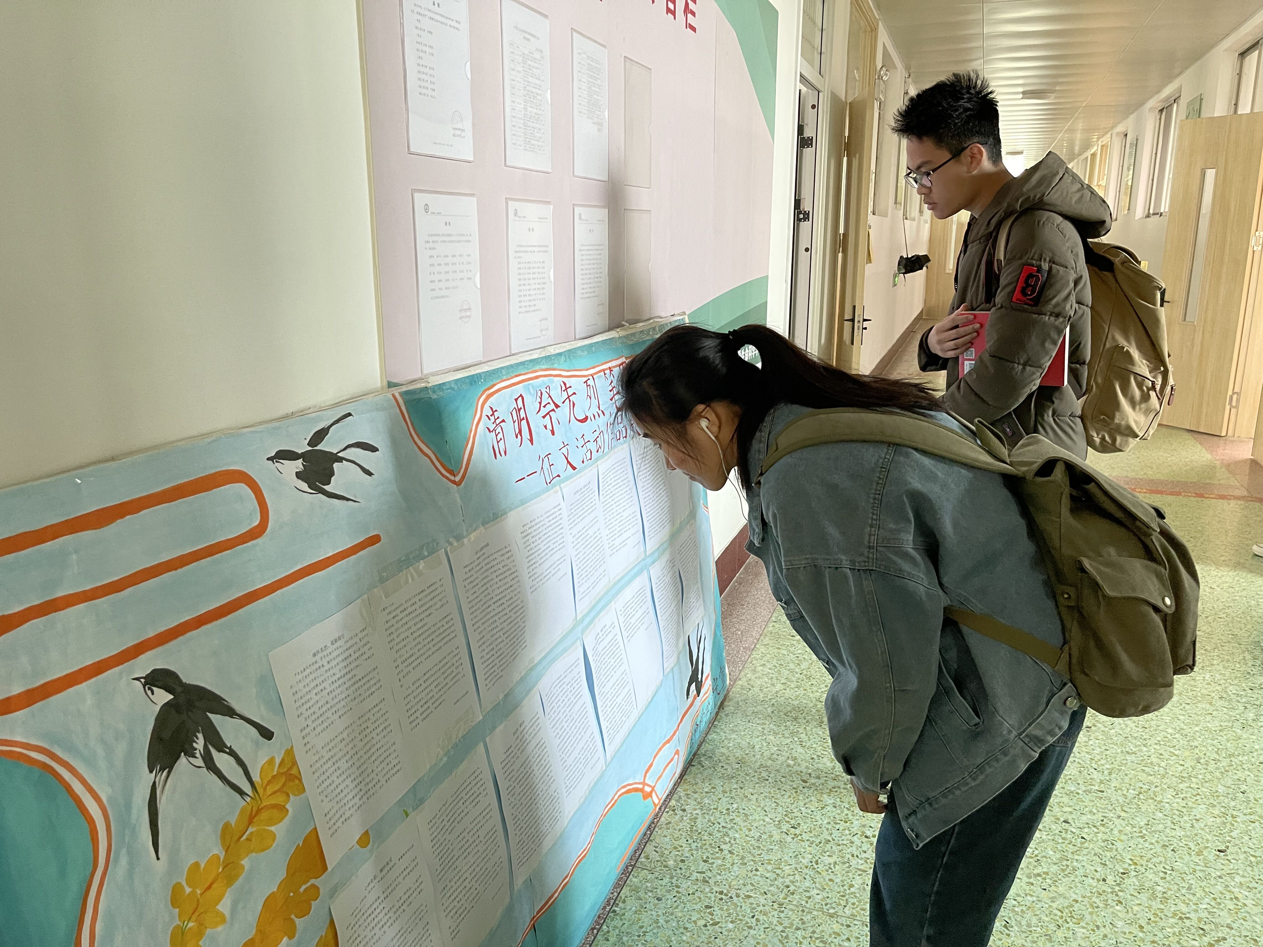 此次活动围绕“缅怀先烈,慎终追远”主题展开,以书写主题征文的形式进行。活动前期,负责人确定征文主题,制定详细规则及注意事项,并积极在各班级宣传,鼓励同学们踊跃报名参与。李珺瑞同学对比革命烈士的英勇无畏和当今抗疫英雄的无私奉献,表达感恩。赵文丽同学感慨我们在英雄的庇护下享受和平时光,举行纪念烈士活动,既弘扬先烈精神,也观照现实,我们要以先烈为灯塔,奋力前行。王子瑶同学将历史比作折扇,将过往革命先烈的英雄事迹化作折扇上浓墨重彩的文字,她说到,虽然当今五风十雨,国泰民安,但新时代青年仍应铭记先烈热血豪情,追随先人足迹,致敬英雄,把所有慵懒沉迷和止步不前归还给过去,奋发有为,用热泪和汗滴铸就中国辉煌。同学们情感真实,言辞恳切,强烈表达了内心对革命先烈的缅怀和感激之情。经过评委客观公正的评选,岳晨阳、李珺瑞、朱右佳、于振慧、赵文丽、王子瑶、杜东山和夏世瑞同学的作品被评为优秀作品并进行展示。