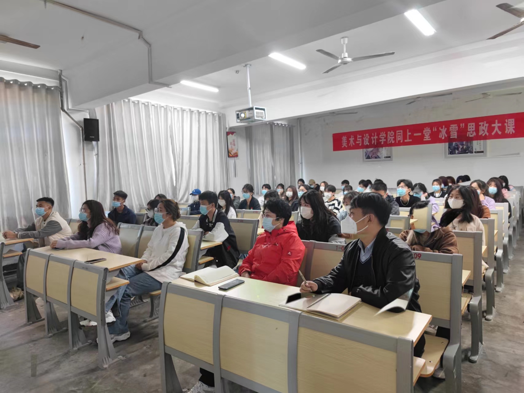 为深入学习贯彻习近平总书记在北京冬奥会冬残奥会总结表彰大会上重要讲话精神,在教育部社科司、北京市教工委等单位指导下,人民网推出了“同上一堂‘冰雪’思政大课”。聊城大学美术与设计学院积极动员并组织全体师生同上一堂“冰雪”思政大课,通过易班平台于4月16日下午14时,以集中观看、自学研讨等形式参与活动。美术与设计学院党委书记杨庆实,党委副书记孙研红,辅导员孔德滕、朱晴、王欣然及学生代表参加此次线下活动。
