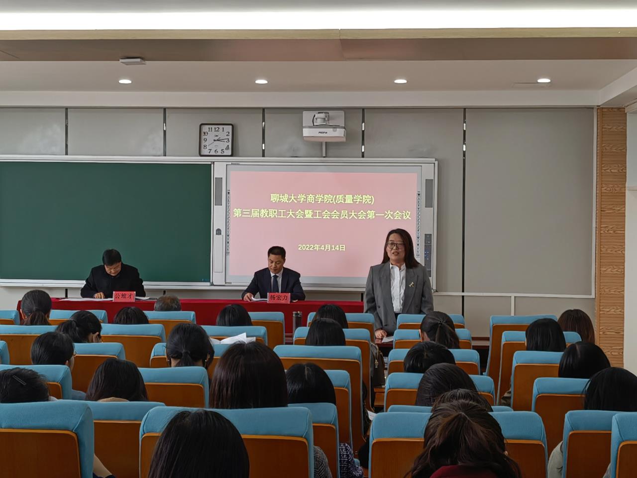 立足新起点,开启新征程,奋力新跨越!为进一步凝聚学院力量,彰显学院办学特色,4月14日下午,商学院(质量学院)第三届教职工大会暨工会会员大会第一次会议在东校区1#709教室召开。本次大会由学院党委书记公维才主持,学院全体教职工和工会会员参加会议。
