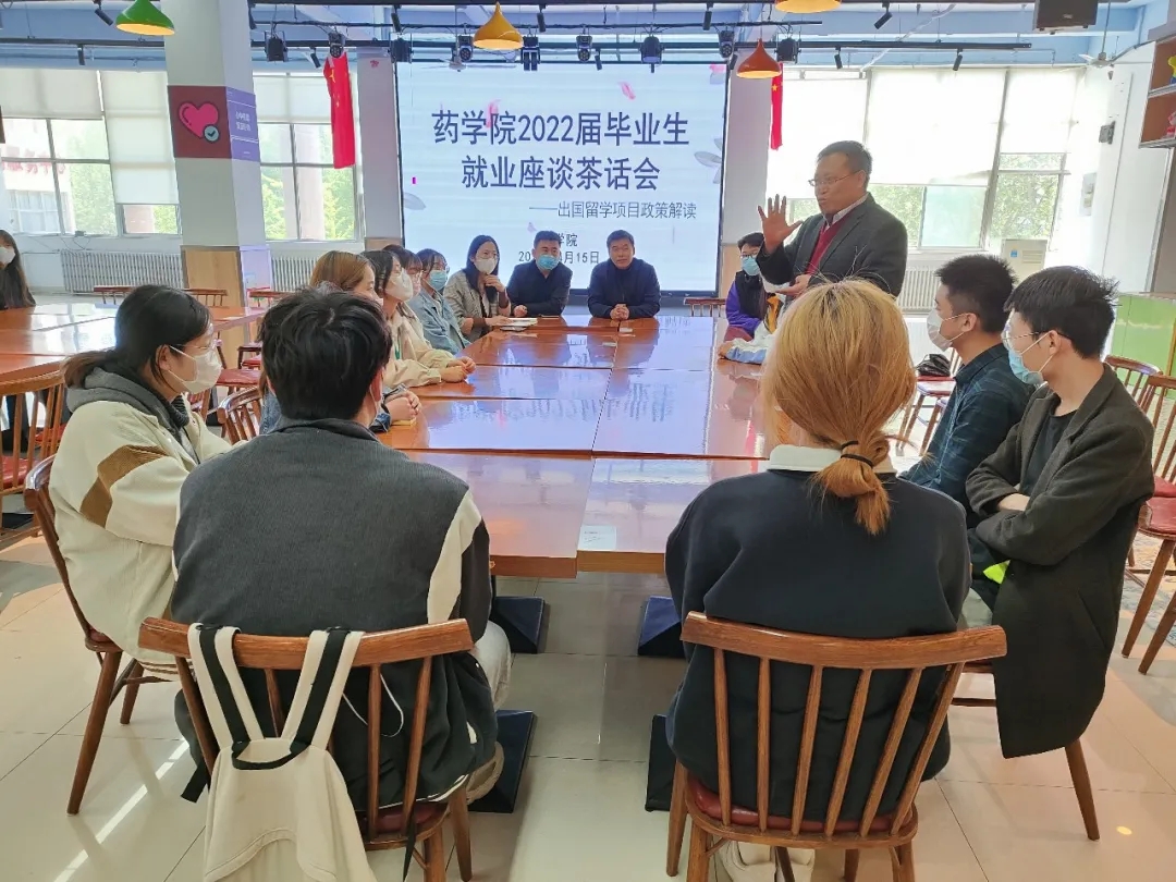 为加深毕业生对出国留学政策的了解,帮助毕业生了解当前的就业形势,避免毕业即失业现象的出现,4月15日,药学院于聊城大学东校区翰苑餐厅二楼举办“药学院2022届毕业生就业座谈茶话会”活动,邀请国际合作交流处处长钱润池作为此次活动的主讲人,药学院党委书记程波、党委副书记李永新、辅导员王秀平与2018级学生参与其中。