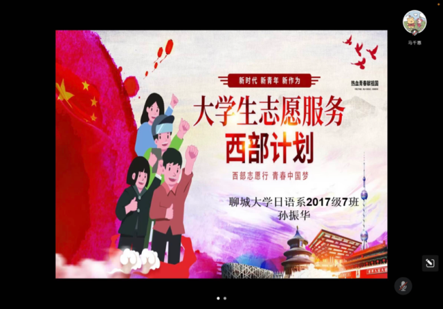 为进一步做好大学生志愿服务西部计划工作,弘扬志愿精神,转变大学生的择业就业观念,引导并动员毕业生到西部去、到基层去、到祖国和人民最需要的地方建功立业,4月20日,外国语学院举行线上西部计划宣讲会。外国语学院辅导员岳圆、青软集团校企合作经理吴海亮、外国语学院西部计划志愿者孙振华、成艺以及外国语学院各专业学生参加了此次会议。本次宣讲会由西部计划志愿者孙振华主讲。