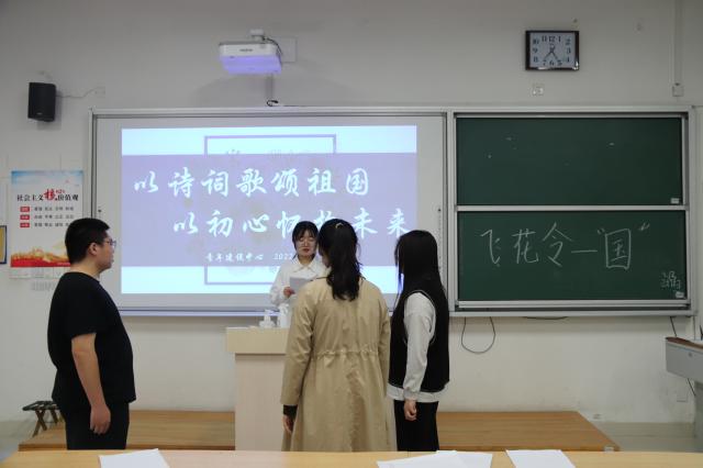 以词传情,歌颂祖国。为传播中华优秀传统文化,以实际行动迎接党的二十大胜利召开,歌颂祖国的伟大与辉煌,4月21日,历史文化与旅游学院于6#A502举办“以诗词歌颂祖国,以初心拥抱未来”活动。