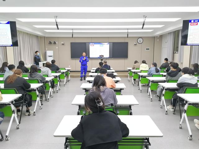 在白雷震老师的讲解下,同学们了解到,蓝天救援队是中国民间专业、独立的纯公益紧急救援机构,全国登记在册的志愿者超过50000余名,其中有超过10000名志愿者经过了专业的救援培训与认证,可随时待命应对各种紧急救援。聊城蓝天救援队成立至今曾参加四川汶川、青海玉树等地的地震救援以及河南郑州的抗洪救灾工作。随后,白雷震从部分救援案例以及本人的真实经历入手,向同学们普及安全知识,如遇到火灾、地震等灾害时的正确逃生办法,并具体介绍了三大急救知识。一是异物阻塞后的处理办法,即海氏急救法,针对不同年龄阶段人群的应使用不同的操作方法。二是心跳呼吸停止时的急救,若身体有创伤,应就地取材,用口罩或方便袋等对伤口进行及时处理。三是猝死急救,当出现心脏骤停的情况,要及时进行心肺复苏。在讲解的同时,他利用人体模型向同学们演示了人工呼吸、心肺复苏、胸外按压等急救方法。在专业人员的指导下,同学们纷纷上台操作。李晓鹏表示,掌握一定的急救技能不仅在爬山、旅游等户外活动时更好的保障自身的安全,也能在他人遇到危险时伸出援助之手。