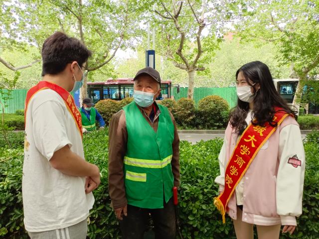 整洁的街道、美丽的花卉、葱郁的植物,在扮美城市空间的同时,也滋润着市民的眼球,为“江北水城”增添了一抹色彩。商学院社会实践队走出校门,探寻“美丽”背后的秘密。活动伊始,队员们对修剪树木的园艺工人进行采访,了解到“五一”小长假期间,为确保良好的城市容貌,给广大市民和游客营造一个整洁有序、环境优美的生活环境, “城市美容师”们继续默默坚守岗位,用自己的劳动助力文明城市的创建。同时,同学们了解到对园艺工人们来说,每一天都是劳动节,他们在用自己的方式装点城市。尤其是到了春暖花开的季节,任务更加繁重。队员们纷纷向其表达自己的敬意,并为工人们送上提前准备好的饮用水。随后,同学们也在环卫工人们的指导下,拿起剪刀,学着进行简单的树木修剪,又重又长的剪刀让他们感到吃力,一番劳动下来,队员们又进一步了解到了工人们的不易。活动最后,队员们表示“园艺工人们陪城市走过四季,用勤劳双手美化城市的容颜,他们的背影深深,值得我们致敬。”