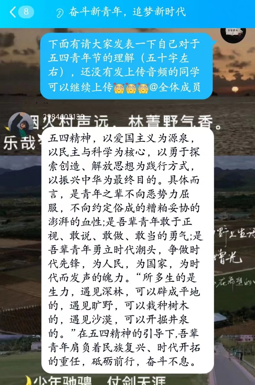 为推动同学们继承和发扬爱国、进步、民主、科学的五四精神,回顾和缅怀令人难忘的革命历史岁月,增强同学们的责任感与使命感,5月10日,政治与公共管理学院于线上举办“奋斗新青年,追梦新时代”爱国主题朗诵活动。