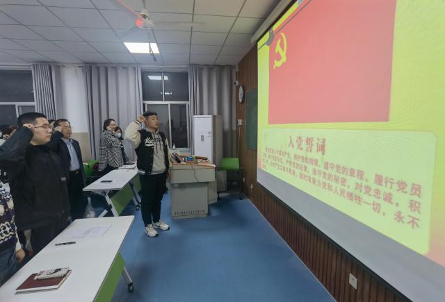 李承虎作总结发言,对全体党员同志提出希望和要求:第一,要不断增强入党的光荣感和责任感,加强理论学习,将党的理论知识真正做到内化于心,外化于行;第二,要始终以党员的标准严格要求自己,不但要在组织上入党,更要在思想上入党,积极践行“请党放心,强国有我”的铮铮誓言;第三,在学习上、工作上、生活上要主动亮出党员身份,以身作则,率先垂范。最后,全体党员面对党旗庄严宣誓。