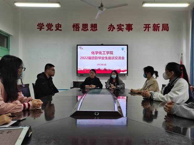立诚于心,守信于行。为做好助学贷款毕业生诚信感恩教育,增强贷款诚信度,强化学生诚信意识,进一步做好国家助学贷款还款工作,5月14日,化学化工学院于东校区4#A115举办2022届贷款毕业生座谈交流会,会议由学院党委副书记、副院长段艳林主持,辅导员陈梦圆及毕业生代表参会。