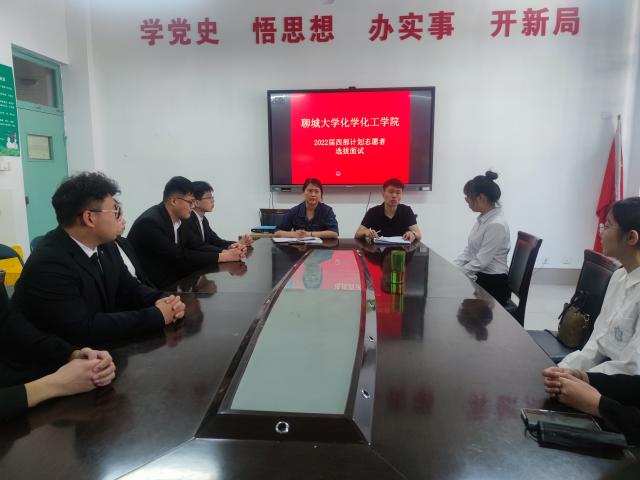 青春播撒西部,肥沃祖国疆土。为鼓励、选拔优秀学子投身西部建设,高质量地推动西部计划工作的进行,发扬化学化工学院西部计划志愿者的优良传统,5月20日,化学化工学院于4A#115举办2022届西部计划志愿者选拔面试活动,化学化工学院党委副书记、副院长段艳林、辅导员景伟超、李洪刚担任面试评委。