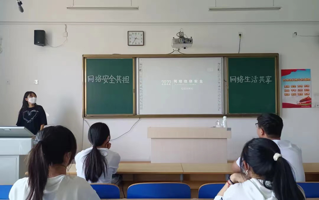 维护网络安全没有局外人,你我皆有责。主持人围绕当前网络安全现状、网络安全法律法规、网络安全意识提升指南、网络安全总结四个方面展开讲解,结合网络诈骗、网络社交、网络信息泄露事件等具体案例阐述作为人类活动第五空间的网络空间危机四伏,新型安全攻击层出不穷,提醒同学们增强网络使用安全知识的学习、遵守网络使用安全意识。为进一步提高同学们对网络安全的警惕意识,主持人播放了相关短视频,借助生动的动画让同学们更加深入了解网络是把双刃剑。主持人表示,网络安全作为国家十大安全体系之一,《中华人民共和国网络安全法》、《中华人民共和国个人信息保护法》等相关法律法规在维系安全体系中起着非常重要的作用。短视频结束后,同学们利用准备好的PPT交流感想并阐述个人对网络信息的认识及防范措施,张婉婷同学指出,当前个人网络安全意识仍然薄弱,我们应警惕网络诈骗,严格遵守国家法律法规,落实网络安全责任制。
