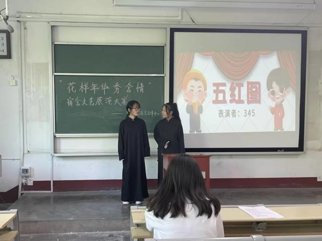 比赛开始前,主持人对本次宿舍文艺展演大赛规则以及流程进行详细介绍:本次比赛以宿舍为单位,参赛作品以弘扬中华优秀传统文化、地域文化、学校文化、宿舍文化为主线,通过舞蹈、演唱、小品、相声等形式展现,赛后评委现场打分并公布比赛结果。上半场比赛正式开始:相声表演《五红图》以诙谐幽默的语言引得观众捧腹大笑;自制剧《疫情下的甄嬛传》点燃了全场气氛,展现了疫情之下学生积极乐观的心态;舞蹈《明月几时有》古韵浓厚,体现中国传统文化深厚的文化底蕴。比赛中场休息:游戏《数字大爆炸》带动全场观众积极参与。紧接着,下半场比赛拉开帷幕:一首五四青年版《错位时空》表达了学生对英雄发自内心的崇敬;小品《魔鬼赌场》紧跟时事深刻展示了扫黑除恶中的困难,引发观众深刻思考;此次比赛在歌曲《七月上》中落下帷幕。随即,评委现场打分,评出一、二、三等奖,此次比赛圆满结束。