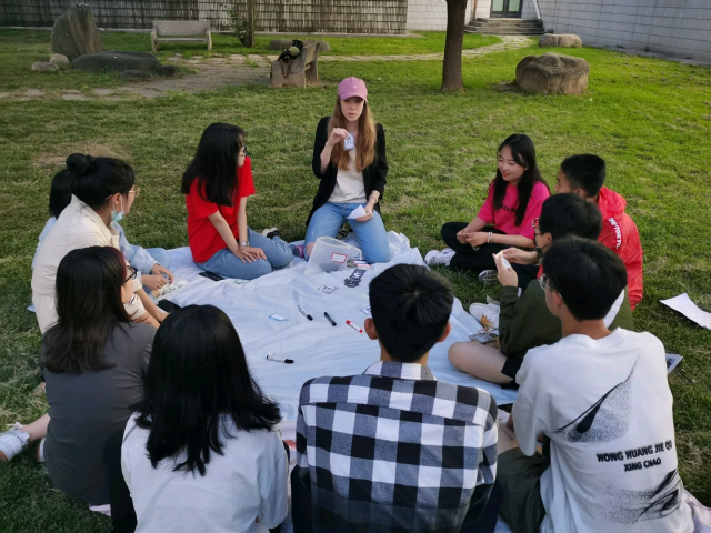 第三次“English Corner”则将视角转向判断推理与口才较量,开展同学们耳熟能详的“狼人杀”游戏活动。正值五月好时节,本次活动特意被安排在户外。同学们沐浴着阳光,扮演着不同的迷人角色,利用头脑风暴斗智斗勇,在放松身心的同时提高了语言表达能力和逻辑思维能力,感受到浓浓的英语魅力。