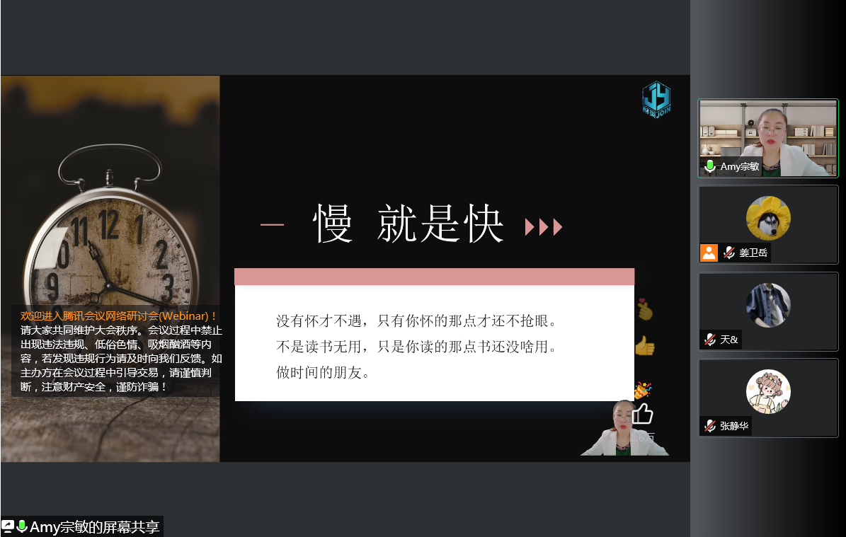本次讲座特邀嘉宾是创社服盟的Amy宗敏老师。作为轻餐饮创业平台孵化主理人,宗敏老师从当代年轻人所面临的困扰讲起,介绍创业就业的社会大环境,条理清晰的讲解得到了同学们的一致好评。宗敏老师通过抵抗黑天鹅、正确做规划、人生不设限三个方面,帮助同学们树立良好的求职心态、定位职业目标、补充职业燃料。在讲解职业规划环节,宗敏老师向同学们介绍技术专家、管理者、创业者三大职业赛道,并依次讲解执行力、影响力、关系建立、战略思维四个方面与三大职业赛道的对应关系,帮助同学们定位满足自我需求的职业目标。此外,宗敏老师向同学们讲解简历要点、简历要求以及面试方法,强调在求职中要分析岗位的需求,匹配相应的卖点,重点突出自身的亮点。同学们纷纷表示,活动过后,对职业目标的定位有了更清晰的认知,同时也学到了如何在简历与面试中突出自己的亮点。