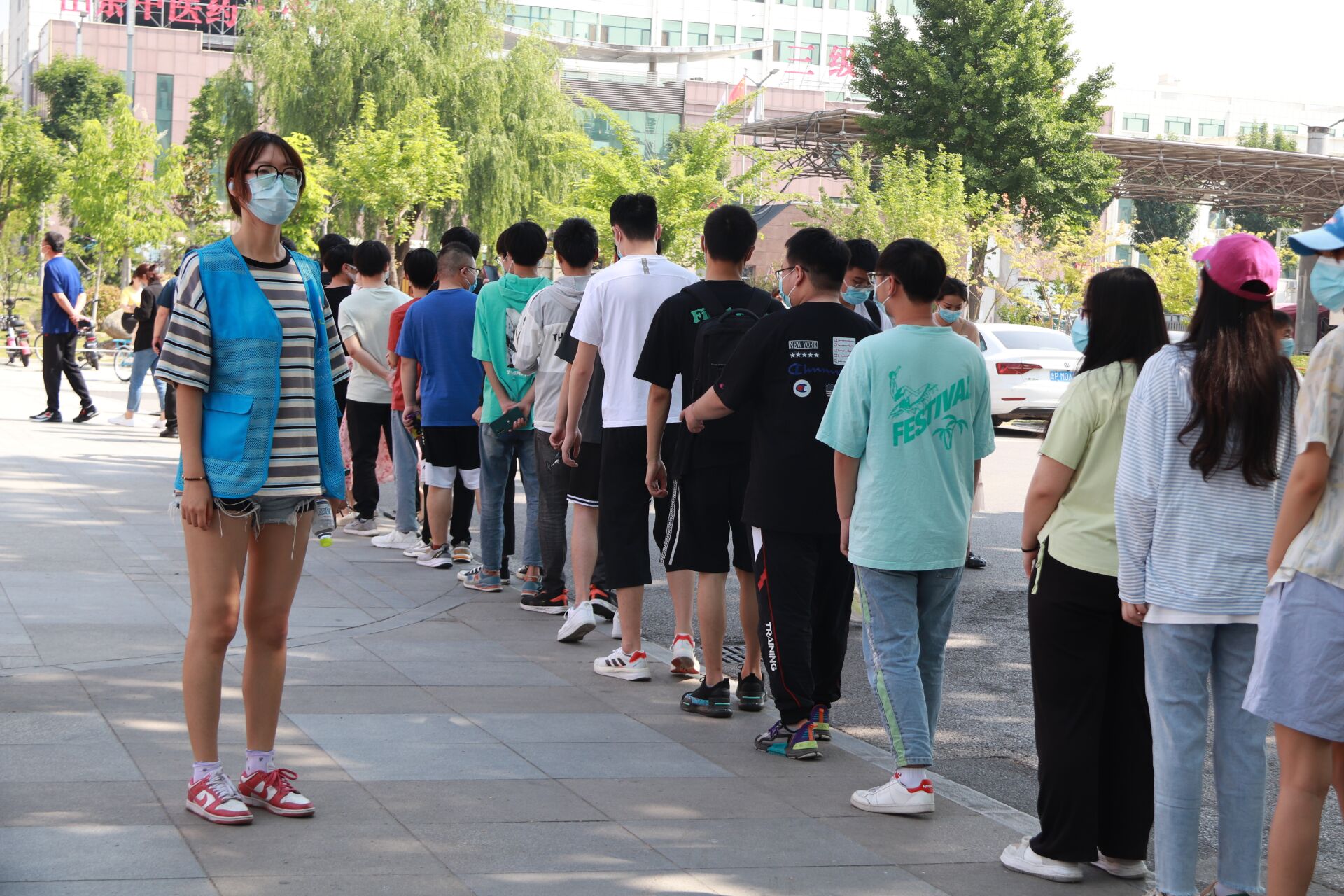 履职尽责,行而有力。本次核酸秉持分流检测、应检尽检的原则,文学院招募多名青年志愿者协助核酸检测工作。核酸检测前,志愿者们提前抵达核酸现场准备,积极疏导整理队伍,进行带队工作。同时,志愿者时刻提醒同学们戴好口罩、注意脚下黄线间隔并保持一米距离,提前打开信息采集二维码并将亮度调至最高,有效地维护现场秩序、提高检测效率。在青年志愿者们的耐心引导及帮助下,前来进行核酸检测的教职工、后勤人员以及学生均有序扫码登记个人信息,依次进行核酸标本采样,即采即走。“志”在心中,“愿”在行动。烈日炎炎,身着蓝色马甲的志愿者活跃在每一个等候区与检测区。青年志愿者们的力量对于疫情防控工作来说可能微不足道,但却是青春的责任与担当,他们身上的担当精神已经被诠释的淋漓尽致。共显担当,责任在肩。每一份无惧都应该被感动,每一份付出都应该被铭记。