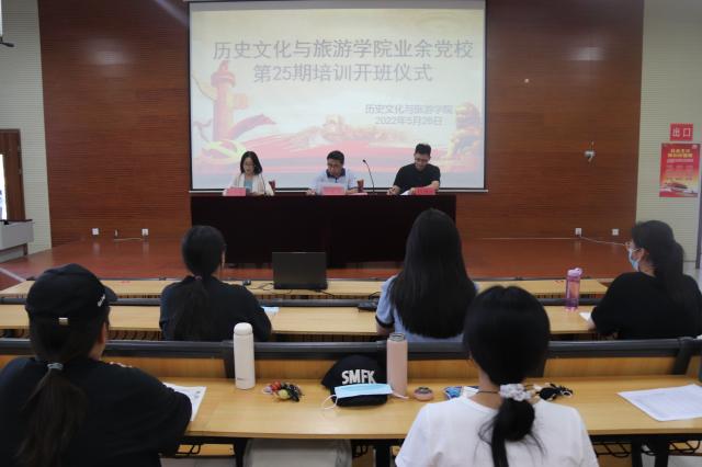 为进一步推动党员发展工作的制度化、规范化,加强学生党支部建设,5月26日,历史文化与旅游学院于6#A106报告厅举行业余党校第25期培训开班仪式暨第一次党课培训,学院党委副书记、副院长卢庆洪,学院组织员孙士银,辅导员巨国运出席开班仪式,历史文化与旅游学院全体入党积极分子于线上、线下共同参加本次学习。