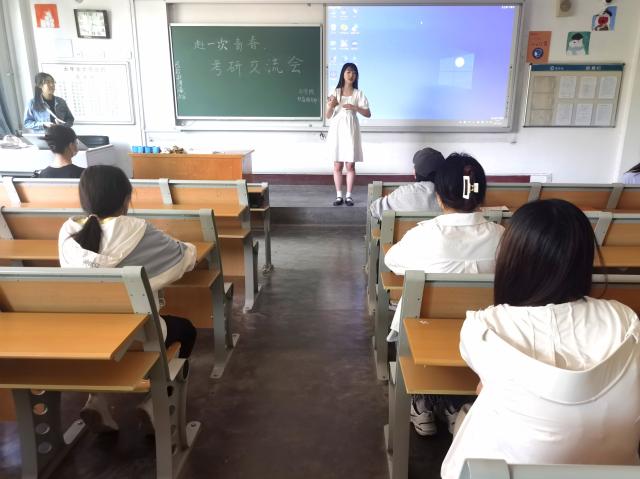 活动中,主持人首先介绍了六位学姐,欢迎学姐的到来,邀请学姐们给在场学生在生活和学习上提供一些合适的建议。紧接着,六位学姐依次发言,在做完简短的自我介绍后,他们用亲身经历向同学们分享宝贵的考研经验,用通俗易懂的语言总结概括了考研的考试内容和考试技巧,并分别就如何学习好专业知识、如何合理安排自己的大学生活等问题为大家出谋划策。此外,学姐们结合自身考研情况,细致地讲解了备考阶段的心态调整和生活作息,并就如何择校选专业、如何安排学习时间等问题提出了实用的建议。在认真聆听完学姐们的分享后,同学们还积极提出学习和生活中遇到的问题,学姐们详尽地解答,语言幽默风趣,并向同学们表达了真挚的祝福和美好的期望。交流会现场气氛轻松,互动不断,同学们受益匪浅。