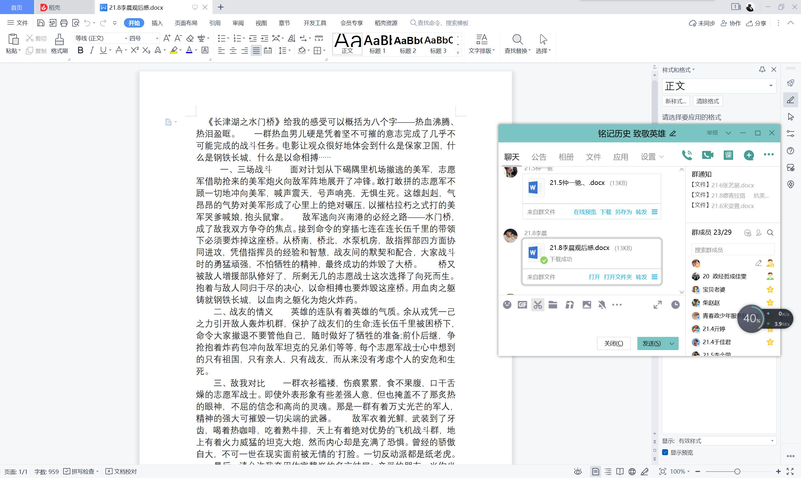 本次活动的重点在于全面回顾中国共产党领导抗美援朝战争的光辉历程和宝贵经验,让同学们在观看红色影片的过程中回忆党的艰辛历程,增强同学们的爱国情怀,赓续红色基因。活动组织者于活动开始前查阅抗美援朝相关资料,并将红色影片《长津湖之水门桥》上传到群中,让活动参与者在了解一定历史的基础上观看影片,以便更好的接受红色文化的熏陶。观影结束后,活动组织者与参与者一同讨论抗美援朝在新时代的意义和价值,活动参与者写出观后感并上传到群中。活动参与者张丙鑫表示,在观看影片后,他的心灵受到极大的震撼,他被中国革命先烈无私奉献、敢于牺牲的精神所感动,深知当今和平不易,更要感谢革命先烈为和平时代洒出的热血,此次观影使他学习到了抗美援朝战争中无私奉献的精神,他决心要为祖国的发展献出自己的一份力量。