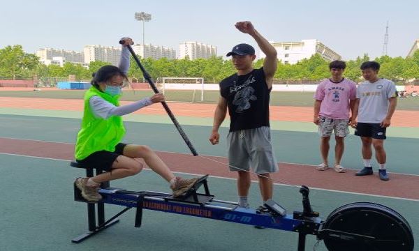 在活动负责人的带领下,志愿者一行人有序抵达西校区田径场。在与龙舟协会队员简短的互相介绍之后,调研活动正式开始。志愿者们结合提前准备好的问题,向龙舟队队员采访在训练过程当中面临的问题和挫折,以及自己的克服方式。苏同学还向志愿者们分享了自己在龙舟队期间获得的锻炼以及成长,并表达了对于未来发展的期待。采访接近尾声,龙舟队队员向志愿者们展示了平时训练所用到的器械,并以身示范,还邀请志愿者们勇敢上前尝试。在队员的指导下,志愿者们的划桨动作渐入佳境,收到了队员们的一致鼓励。参加活动的潘同学表示,在与龙舟队队员的交流过程当中,自己深刻感受到训练过程的不易与艰辛,更是体悟到龙舟精神的深刻含义。