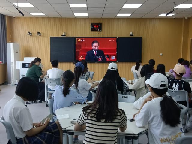 牢记嘱托走在前,勇担使命开新局。为坚持以习近平新时代中国特色社会主义思想为指导,深入落实习近平总书记对山东工作的重要指示要求,帮助广大学生积极贯彻党的十九大和十九届六中全会精神,为建设新时代社会主义现代化强省贡献自己的青春力量,6月1日,我院组织学生代表共同观看中国共产党山东省第十二次代表大会开幕式。