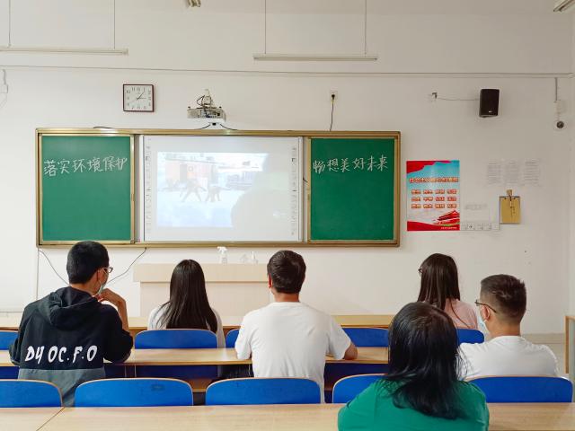 如今,环境保护这一话题越来越频繁地在各种场合出现,生态环境保护的重要性日益凸显。主持人首先以白色污染为例,延伸到当今世界格局下的环保问题,点明本次活动的初衷,引入环保主题。随后,播放主题为人类灾难末日的电影《后天》,影片展示地球因温室效应造成地球气候异变,全球即将陷入第二次冰河纪的严重后果,主持人希望以此来引发同学们对环境保护的深层次思考。影片播放期间,同学们聚精会神,深受影片震撼,同时也引起同学们对环境保护的紧迫感。“希望以后大量使用、重复利用可降解材料的东西。人们都主动保护环境!” “希望学校的店铺减少包装袋的使用。”一句句有感而发的话语体现出同学们对保护环境的支持态度。影片放映后,大家仍沉浸在环境破坏带来的严重危害之中,在主持人的组织下,同学们畅谈观影感受,活动精神内涵在思想碰撞中得到升华。