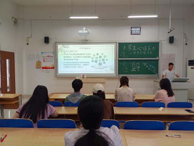 活动伊始,主讲人邀请同学们一起进行心理健康小游戏测试,活跃心理讲座的气氛,调动同学们对心理知识的兴趣,各位同学根据步骤积极参加心理小测试,并通过测试得知自己的日常压力的来源与强弱。主讲人接着围绕压力的定义、来源、表现、危害和缓解压力的方法,首先阐述了什么是压力,帮助同学们明确压力的定义。随后,主讲人讲述个体内部压力、家庭压力和校园压力等压力的来源,分析同学们近期的心理压力和浮躁情绪,同时全面讲解了压力的表现和压力的危害,进一步增加同学们对压力的认识。为加深同学主讲人通过列举典型故事案例,生动形象地展示了要运用积极交流、参加体育锻炼和寻求专业帮助等方式理性面对压力,并提供音乐法解决焦虑、抑郁、紧张等不良心理情绪,帮助同学们更好的处理不同压力下的情绪问题。