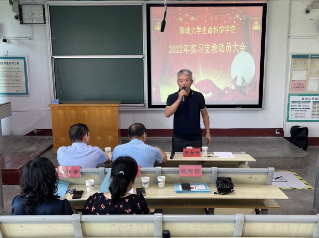 为调动同学们的实习支教热情,引导同学们树立正确的实习观念,加深对实习工作重要性的认识,保障实习支教工作的顺利进行,9月2日,生命科学学院于聊城大学东校区2#401召开2022年实习支教动员大会。会议以线上线下相结合的方式召开,生命科学学院党委书记张金保,党委副书记、副院长李晓鹏,副院长徐伟,学院全体实习支教指导老师与2020级生物科学专业同学参加会议。会议由生命科学学院教师巨延虎主持。