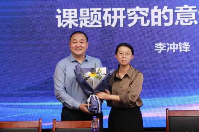 李冲锋教授的专题讲座题为“课题研究的意识与策略”。首先,他以一张图片引出问题意识,要求学者要学会区分教育现象与教育问题,辨别真问题与假问题及辨析研究对象与研究材料等;第二,他强调单视角审视与多视角审视,利用阅读提供价值取向、心理教育、利导思维等多个视角的同时,可以从一个新的研究角度研究课题,即要有创新性;第三,研究立场是研究者进入研究时所秉持的价值取向与研究态度,要注意本土立场与异域立场,学科立场与非学科立场,自我立场与他者立场;第四,要确定研究的课题前提是否合理准确;第五,概念界定要明确概念的内涵与外延;第六,可以使用替换法来辨认课题研究是否具有特性。此外,他补充道:“越忙越要读书”,希望学生持续并适度的阅读,并提出以“燃梦行动”带动同学们每日阅读打卡。他在汇报中还提出,学者要保持向学之心和专业之身,希望推动教师走向科学教研之路,并提出科研的六种意识:问题意识、视角意识、立场意识、前提意识、界定意识、特性意识。
