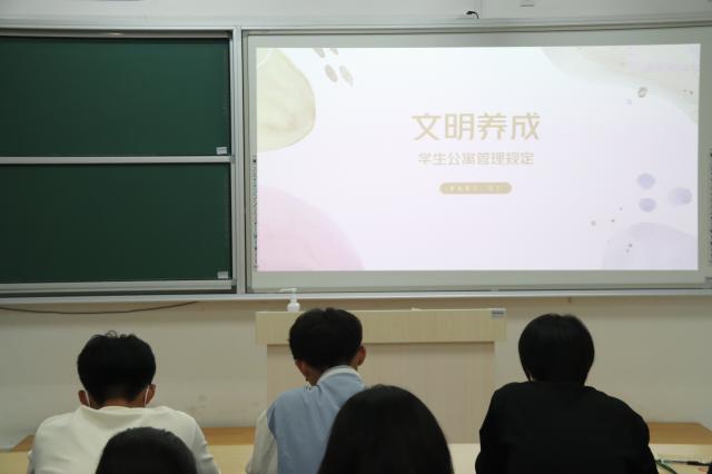 随后,主讲人组织同学们观看文明素养讲解视频,该视频介绍了德智体美劳五个方面,强调全面发展和个性发展并重,鼓励同学们树立正确的人生观、价值观,抓住社会发展的新机遇、迎接科技发展的新挑战。活动最后,负责人邀请优秀学长学姐分享大学生活经验,并邀请同学上台分享生活方面的疑惑,学长学姐耐心解答,鼓励同学们参与学院活动,学好专业知识,实现全面发展。