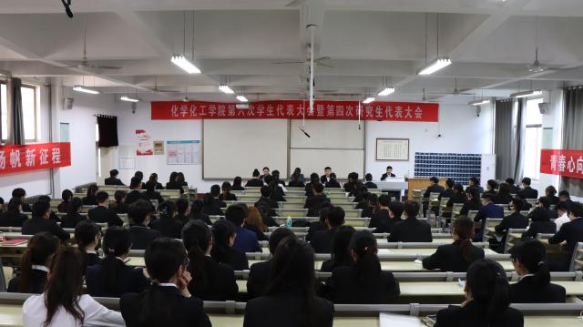 为贯彻落实《关于推动高校学生会(研究生会)深化改革的若干意见》(中青联发〔2019〕9号)《关于落实共青团和学联对高校学生会(研究生会)指导管理责任的若干规定(试行)》(中青联发〔2020〕4号)精神,深入贯彻落实习近平新时代中国特色社会主义思想、中央党的群团工作会议和全国高校思想政治工作会议精神,推进学生会、研究生会组织依法依章开展工作,保障广大同学依法依章参与学校学院治理,充分发挥学生组织职责职能,推进学校学院民主办学、民主管理,9月29日,化学化工学院于4#C101、4#C103召开第六次学生代表大会暨第四次研究生代表大会。化学化工学院党委副书记、副院长段艳林,团委书记刘丽霞,学院辅导员赵艳敏、陈梦圆、孙忠月,研究生班主任李霞、付蓉,校学生会主席团成员马超及学生正式代表、列席代表共130余人参加会议。