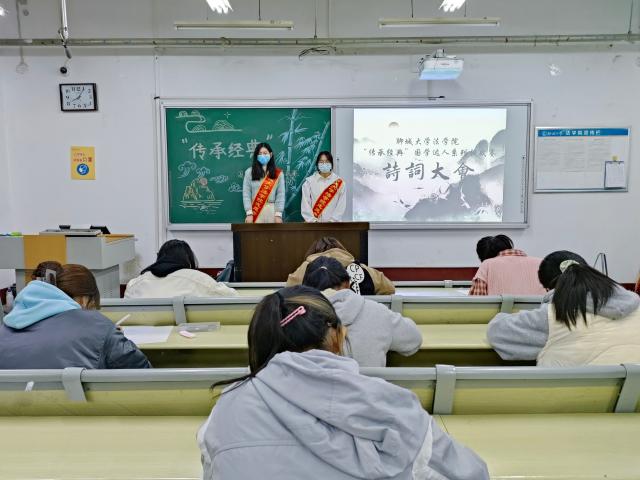 传统文化播神州,诗词文明永流传,10月13日,法学院于西校区10#C620举办以“经典咏流传,诗词溢校园”为主题的活动,法学院2021级、2022级部分学生参加本次活动。