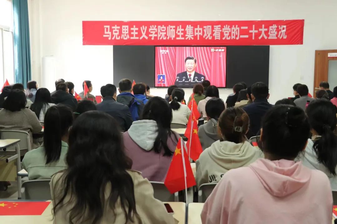 10月16日,我院组织全体师生于政史楼收听观看党的二十大盛况。为了助推全院师生深入学习领会党的二十大报告精神,营造浓厚的学习氛围,学院在“微思政课交互体验平台”智能教室设置主会场,同时在A203、C503等教室设置多个分会场。