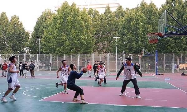 本着友好、拼搏的精神,比赛在裁判清脆的哨声中拉开了帷幕,高高抛起的篮球点燃了比赛的激情。比赛一开始,精神抖擞的队员们开始激烈的抢球、断球、防守、进攻模式。场外观赛的同学加油助威。他们奋勇拼搏,用自己的激情与汗水传达着对生活和运动的热爱,传达着友谊互助的团队精神。在赛场上,每位队员都赛出了风格,赛出了水平。比赛打得如火如荼,热闹非凡。教师队伍与学生队伍激烈角逐,不分伯仲。教师队伍以高昂的斗志、饱满的活力、丰富的经验先拔头筹,他们带球突破,拆挡结合,接连得分,博得了阵阵热烈的掌声和呐喊声,这使得本就紧张的比赛进入了白热化阶段。随后的比赛中学生队伍疯狂的反扑,试图扭转局势,但教师队伍依靠稳定的发挥、精准的射篮,牢牢掌控比赛节奏,并取得了最终的胜利。