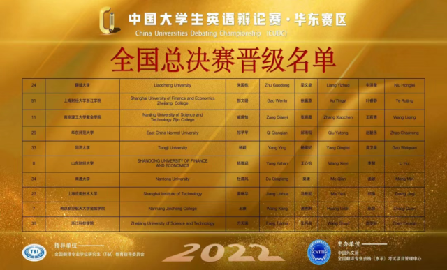 10月15-16日,由全国翻译专业学位研究生教育指导委员会指导、中国外文局CATTI项目管理中心主办的2022年中国大学生英语辩论赛(CUDC)华东赛区开赛。外国语学院演讲与辩论团队牛洪垒老师指导的朱国栋和梁义卓两位同学代表聊城大学参加了本次华东赛区的大区赛并成功晋级全国总决赛。