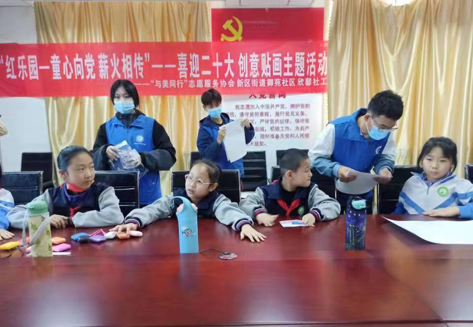 为宣传中国共产党第二十次全国代表大会,传承红色基因,激发小朋友们爱党爱国之情,引导其成为祖国栋梁之材,做祖国未来的接班人。10月18日,美术与设计学院“与美同行”志愿服务协会于聊城市东昌府区御苑社区举办“红乐园——童心向党 薪火相传”粘土粘贴活动。