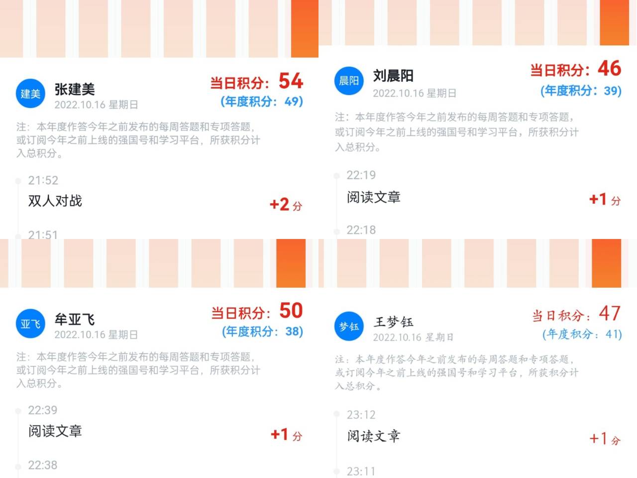 此次学习竞赛活动充分利用“学习强国”平台学习载体作用,采用线上答题、积分排名的形式开展比赛,激发党员学习热情,提高党员思想觉悟。参赛者通过阅读时政热点、观看时事新闻、参加理论答题等完成每天的学习任务,深入了解党中央的大政方针与党的二十大等时事热点,坚定理想信念,提高政治站位。比赛过程中,法学院教工党员围绕学习内容,深入领会习近平新时代中国特色社会主义思想,不断提高政治理论水平与专业素养,力争学在深处、谋在新处、干在实处,学生党员立足法学专业特色,通过竞赛答题巩固理论知识学习,深入贯彻落实党的二十大精神,进一步提升自身专业能力,展现出积极进取、踔厉奋发的良好精神风貌,切实做到以学促干,比学赶超。10月17日,法学院根据个人积分排名情况进行表彰,教工党员刘洁、季昌伟等十八人,学生党员王宝轶、牟亚飞等三十三人分获个人一、二、三等奖。