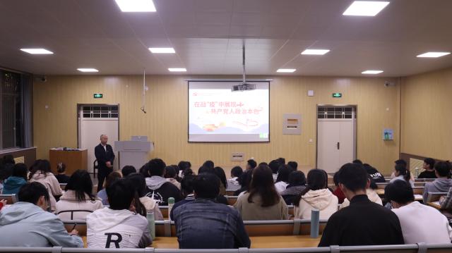 黄现强以“在战疫中展现中国共产党人政治本色”为主题,从始终牢记初心使命、坚持发扬党的优良传统和作风、不断提升工作的本领和能力三个方面进行阐述,深入浅出地向同学们讲述了在疫情防控中广大党员干部勇当先锋、敢打头阵,用行动展现出中国共产党人的政治本色,让党旗在防控疫情斗争第一线高高飘扬。黄现强结合个人在美访问经历带领同学们回顾了2019年以来的抗疫斗争的过程,他指出,面对突如其来的疫情,中国共产党人始终坚持把人民群众的生命安全和身体健康放在第一位,全身心投入到统筹推进疫情防控和经济社会发展工作中去,确保实现疫情防控和经济社会发展双胜利,这考验的不仅是党员干部的初心和使命、作风和意志,更是本领和能力。黄现强号召同学们学习和发扬伟大抗疫精神,积极向党组织靠拢,坚定理想信念,从抗疫精神中汲取力量,担当起党和人民赋予的历史重任。