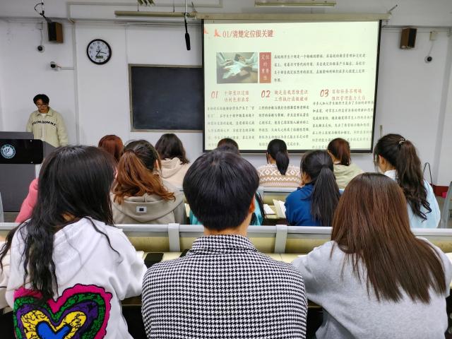 培训课上,尹泽然围绕清楚个人定位、转变工作方式、平衡个人思维三个方面展开,引导学生干部凝聚团队力量,提高工作效率。尹泽然结合个人工作经验,从自我定位的内涵、如何自我定位、自我定位的意义三个角度入手,表示学生干部在对自我有清晰客观定位的基础上,要明确自己的方向,充分发挥自身潜能,强化组织管理能力。针对“如何转变工作方式”这一问题,尹泽然指出学生干部理应保持对工作的热爱,工作中要有目标、有计划、有信心,并着重强调团队协作的重要性,希望学生干部个人具备大局意识和创新意识,切实做到以牺牲小我助力团队进步。对于平衡个人思维,尹泽然借助心理学专业名称“钝感力”一词,呼吁学生干部培养相对坚毅的意志,要保持平常心态,从容面对名利得失,真正做到以更高的标准、更强的责任心对待工作。