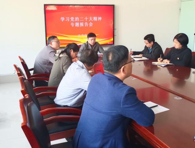 随后,教职工党支部书记盛长富与教职工代表杨盛达教授分别就学习党的二十大精神做了专题报告。