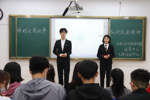 为提升宿舍文化建设水平,增强宿舍凝聚力,展宿舍风采,10月29日,历史文化与旅游学院于6#A303举办“讲好公寓故事,弘扬抗疫精神”文艺展演。