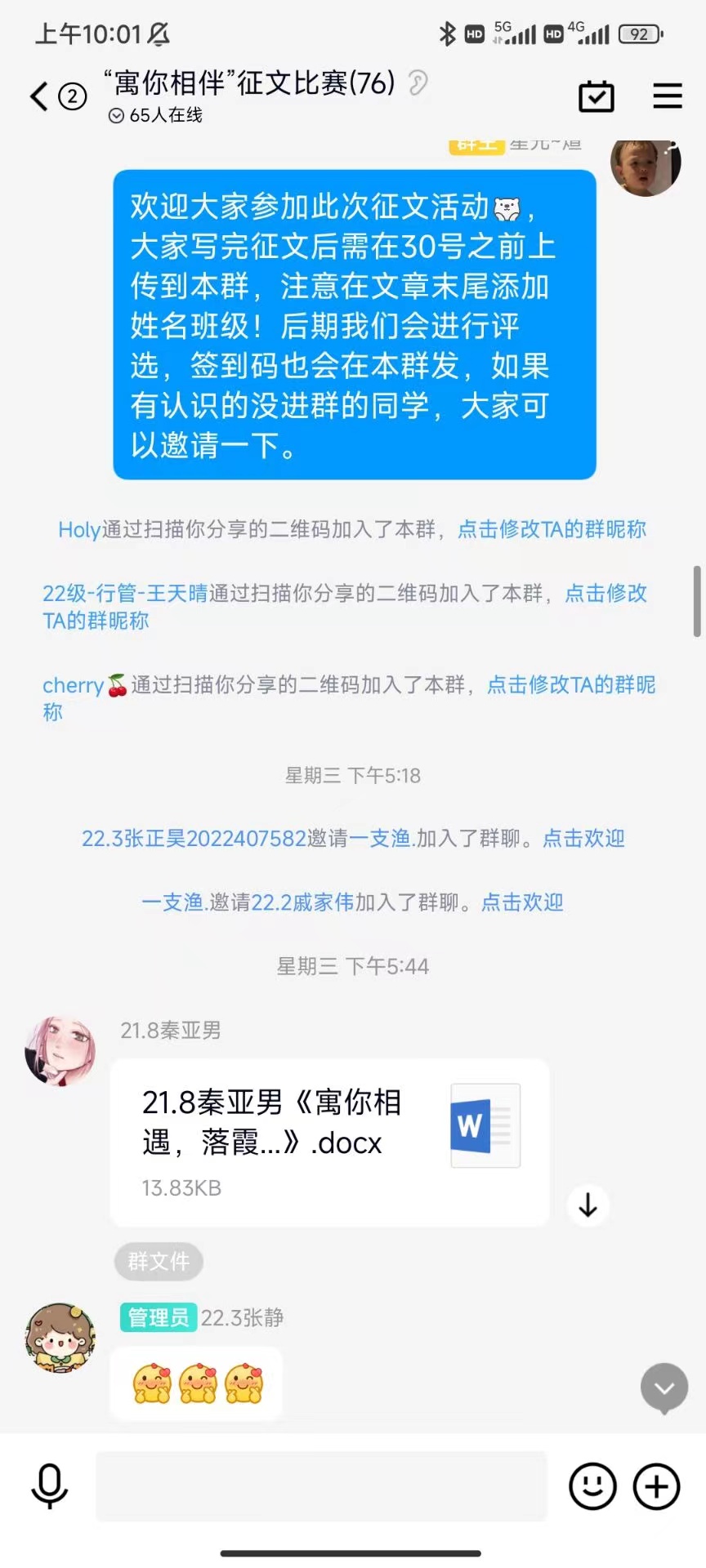 为丰富同学们的宿舍文化生活,增进同学们的感情,10月31日, 政治与公共管理学院于线上举办“寓你相伴”征文比赛。