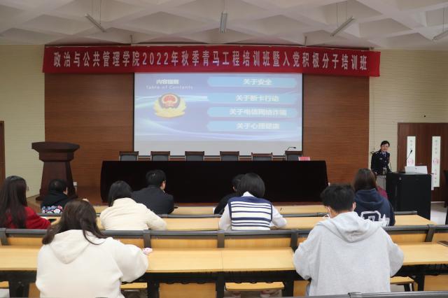 10月30日,政治与公共管理学院于东校区6#C106举办防诈骗讲座,本次讲座邀请了聊城市公安局东昌府分局聊大派出所教导员邢艳蕾担任主讲人,全体青马学员参加活动。