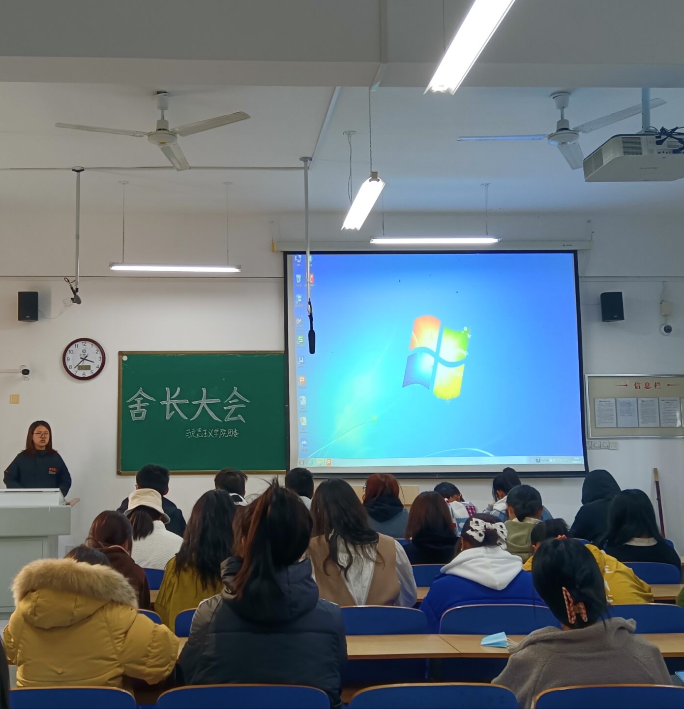 心美言丽宿舍留,德行礼让文明求。本次舍长大会采用线下召开方式,邀请各舍长参加。张娜先向舍长们介绍了学校的相关制度及相关安全措施,随后对院级文明宿舍、校级文明宿舍的评分情况、一学期内通报批评累计次数较多者的处理情况及《宿管中心安全条例》的具体细则进行了讲解。马院积极响应落实《高等学校消防安全管理规定》,深入推进消防安全宣传工作,张娜告知舍长们“119消防安全月宿舍大排查活动”即将到来,并强调宿舍用电安全的重要性。平安用电有利于维护同学们的人身、财产安全,用电不规范会导致不可挽回的损失,张娜呼吁同学们注意宿舍的平安用电。最后,舍长提出同学们反映的宿舍生活问题,张娜一一给予了详细解答。张娜再一次强调舍长的角色定位,呼吁舍长担负起自身责任,督促同学们提高安全防范知识,养成注意安全的习惯,树立良好的学院公寓形象。