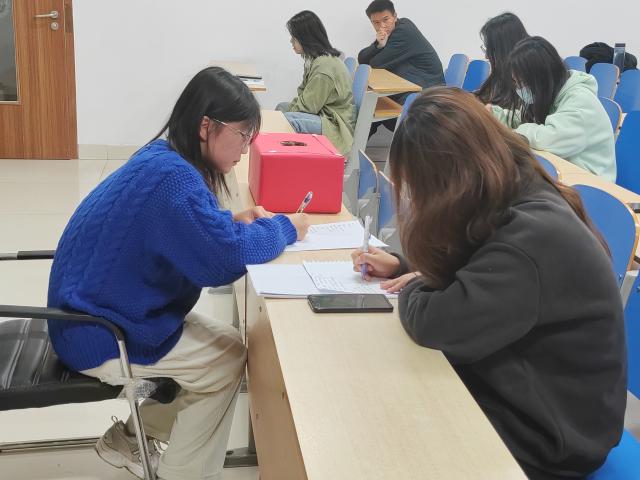 主持人依托ppt向同学们讲解餐厅、大学生服务中心、寝室等地存在的各项问题,并向同学们征集其他意见。随后,各班的生活委员依次进行发言,与主持人进行面对面的沟通。从餐厅环境到超市物价再到寝室公共设施维护,同学们提出了各种各样的问题。主持人认真回复同学们的问题,并表示学院将会坚持从同学们的实际需要出发,在日常的繁琐小事中落实落细。其中,餐厅卫生问题受到同学们的一致重视。疫情当下,做好卫生防护,保障广大师生的用餐安全显得极其重要。主持人表示将会及时向老师反映相关问题,营造安全卫生的餐厅环境。活动最后,各班生活委员将自己认为最重要、急需解决的权益问题通过匿名的方式投入意见箱。根据收集到的问题,主持人仔细地记录、归类、汇总,并表示会竭尽所能解决同学们关注的问题,推动学院权益维护工作的有序进行。