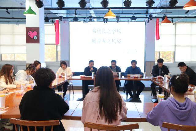 为了加强师生交流,增进师生感情,提供良好的学术环境,营造健康向上的校园文化氛围,11月16日,历史文化与旅游学院于翰苑餐厅二楼举办“乘优良之学风,展青春之风姿”餐厅沙龙活动。学院党委副书记卢庆洪、党委委员官士刚、旅游管理系主任辛灵美、青年教师代表倪鹏、辅导员巨国运、辛超、薛晓宇以及各年级的学生代表参加本次活动,由薛晓宇老师主持本场沙龙。